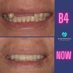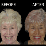 A beautiful lady ?….. trauma to the mouth in her younger years resulted in the loss of some bone along with three front ???teeth….always worried ?about her plastic partial plate…